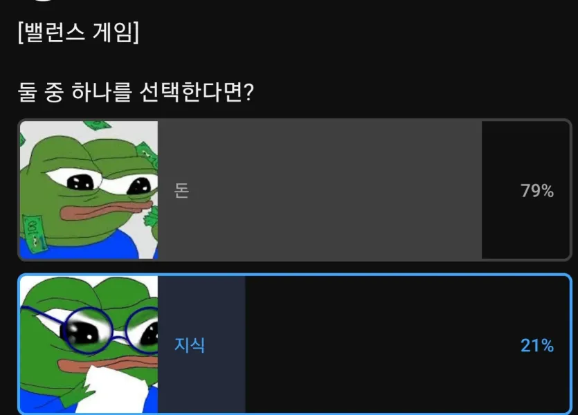 밸런스게임 지식 vs 돈 토트넘 토트넘님의 홈 전체게시물 아이디로 검색 토트넘님의 홈 전체게시물 아이디로 검색 2024-02-13 14:33 338 1 - 첨부파일 : 2.webp (30.5K) - 다운로드 0 2024-02-13 14:33:34 다음글 검색 목록 답변 글쓰기 본문 뭘 고르시나요!ㅋㅋ 출처 웃긴대학 댓글목록1 강윤식님의 댓글 강윤식 강윤식님의 홈 전체게시물 아이디로 검색 강윤식님의 홈 전체게시물 아이디로 검색 2024-02-13 15:44 돈 돈돈 무조건 돈이요 ㅋㅋㅋ 댓글쓰기 돈 돈돈 무조건 돈이요 ㅋㅋㅋ 댓글쓰기 댓글 포인트 안내 이름 필수 비밀번호 필수 비밀글 사용 첨부파일 동영상 이모티콘 적용하기 * 지원 동영상 서비스 목록 보기 지원 동영상 서비스 목록 서비스명URL 주소 유튜브https://www.youtube.com 비메오https://vimeo.com 네이버 TVhttp://tv.naver.com 카카오 TVhttps://tv.kakao.com 테드https://www.ted.com 판도라http://www.pandora.tv 데일리모션https://www.dailymotion.com 슬라이더쉐어https://www.slideshare.net 유쿠http://www.youku.com iQiyihttp://www.iqiyi.com 자동등록방지 자동등록방지 숫자음성듣기 새로고침 자동등록방지 숫자를 순서대로 입력하세요. 댓글등록 댓글 포인트 안내